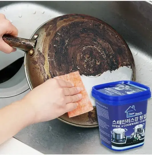 Con nuestra pasta limpiadora ultra eficaz, devuelve el brillo original a tus ollas, sartenes y utensilios de cocina sin esfuerzo y en segundos. Ideal para acero inoxidable, aluminio, cacerolas, tapas, y más.