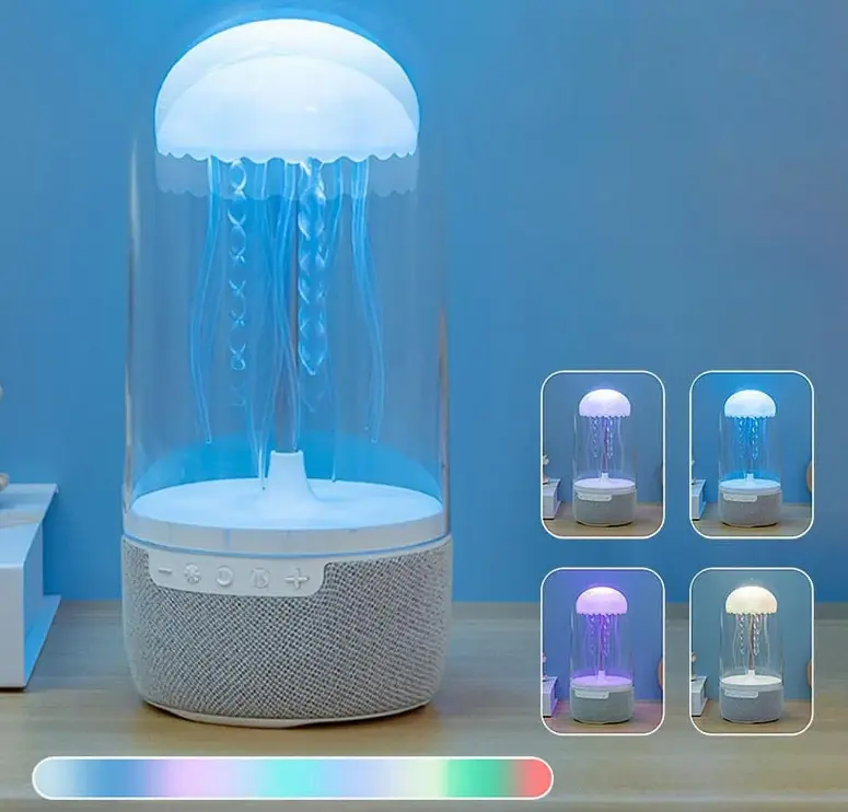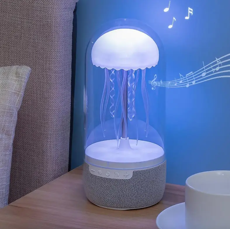 Transforma cualquier espacio con esta lámpara LED en forma de medusa, que además funciona como parlante Bluetooth. Su diseño futurista y relajante es perfecto para tu habitación, sala o escritorio.