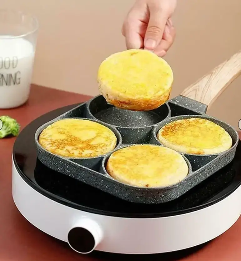 🍳 Diseño de 4 agujeros: fríe hasta 4 huevos, tortillas o mini pancakes al mismo tiempo.