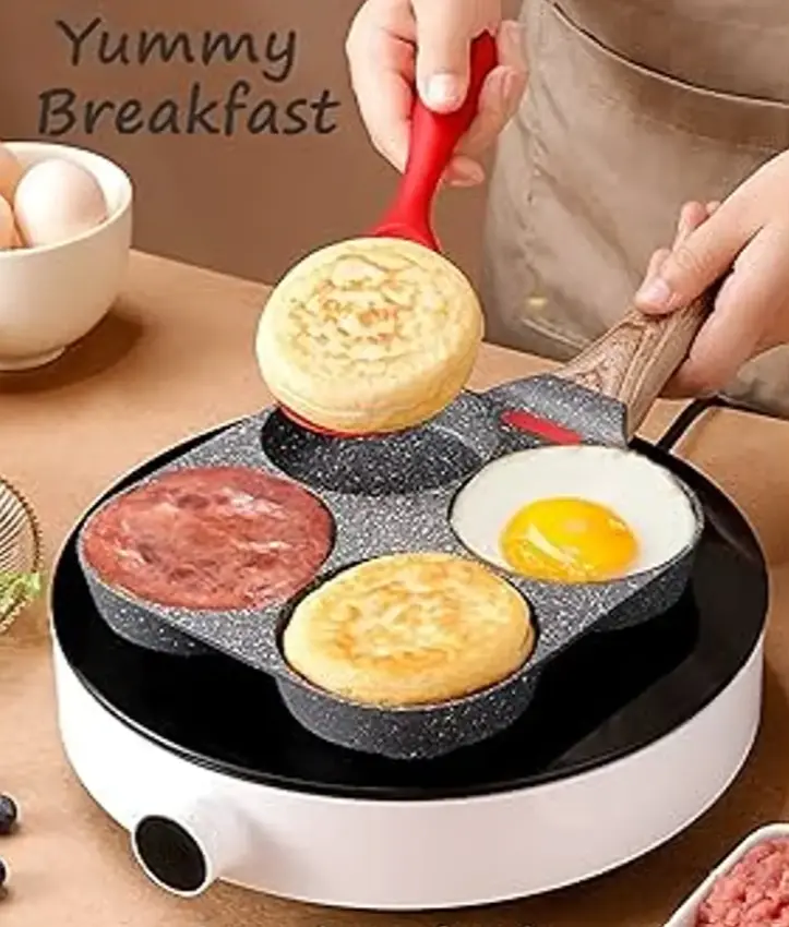 Con esta sartén antiadherente de 4 compartimentos, puedes preparar tortillas, huevos, pancakes o hamburguesas al mismo tiempo, sin que se mezclen y sin que se peguen. Ideal para familias, meal preps o cocineros prácticos.