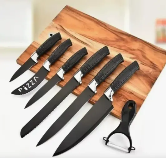 Transforma tu cocina con este elegante set de cuchillos en acero inoxidable de alta calidad. Diseño ergonómico, corte preciso y estilo profesional para chefs exigentes. ¡Tu cocina, al nivel gourmet!