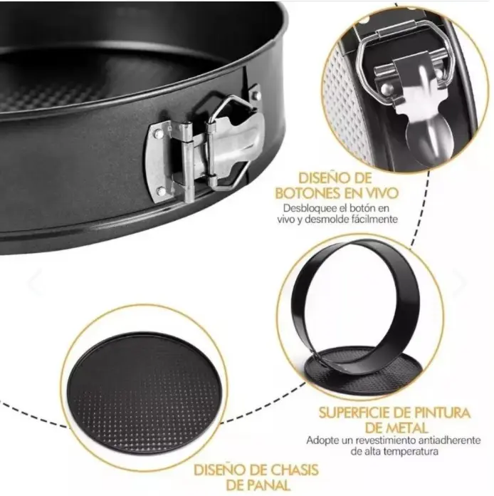 Con nuestro set de 3 moldes desmontables, hornear será más fácil, limpio y profesional. Perfectos para pasteles, panes, quiches y hasta pizzas, estos moldes antiadherentes son el aliado ideal para todo amante de la cocina.